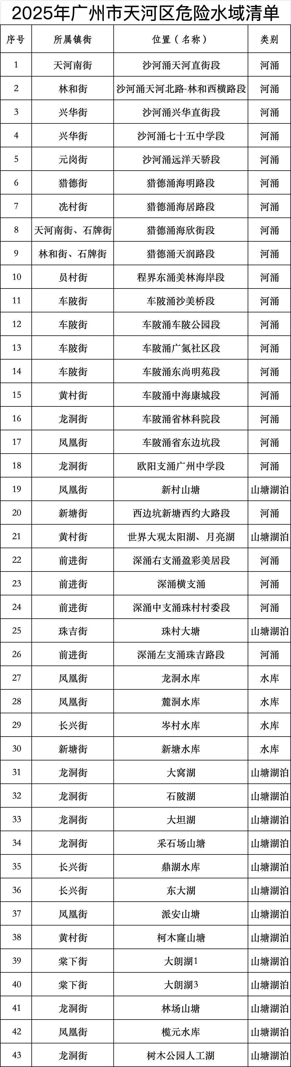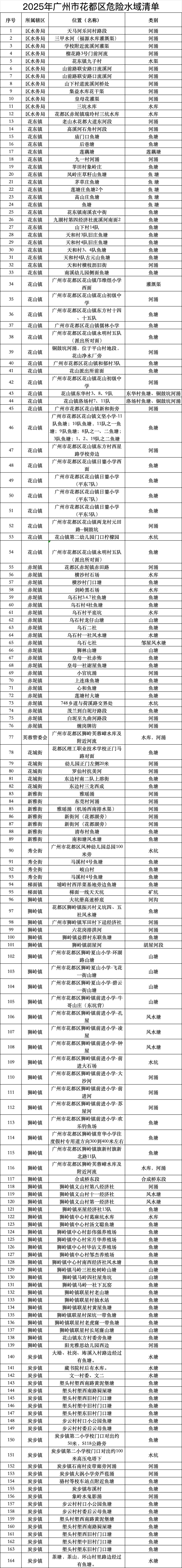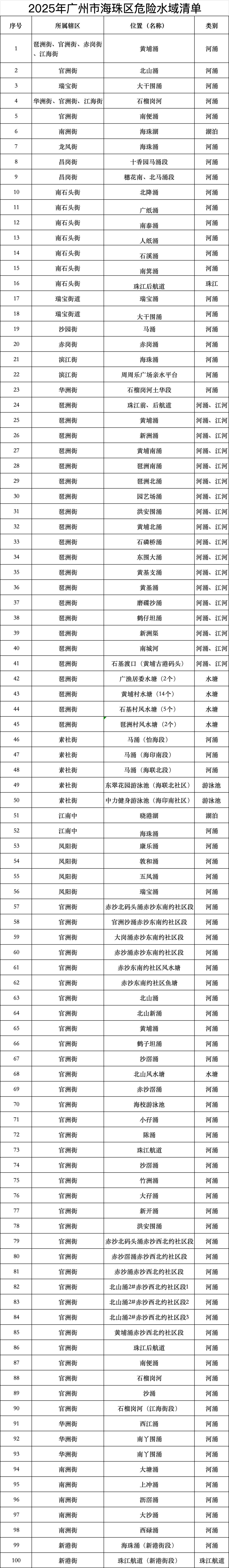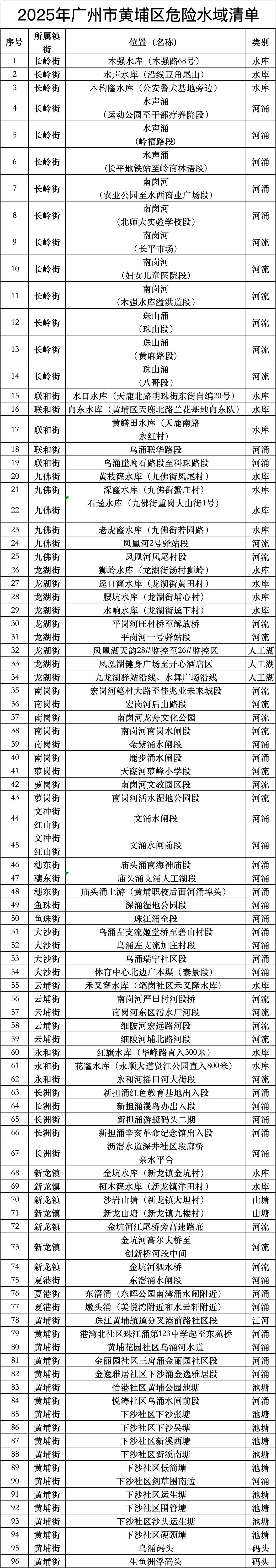 2025年广州市危险水域清单