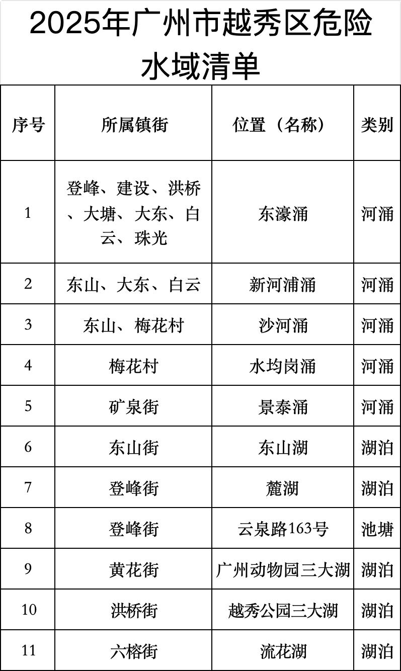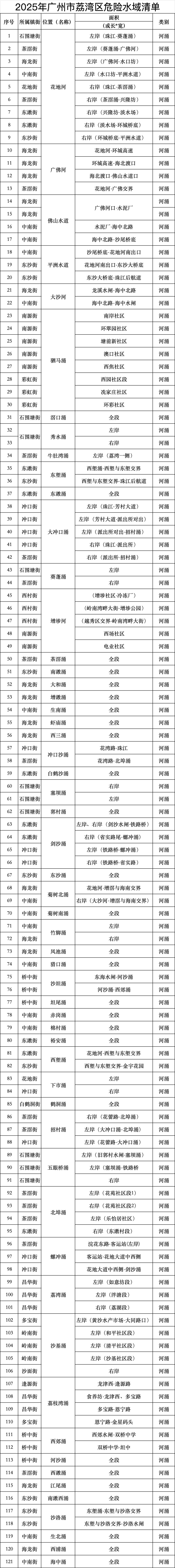 荔湾区危险水域清单